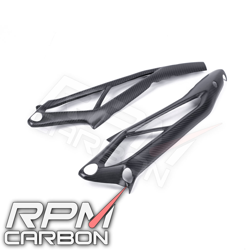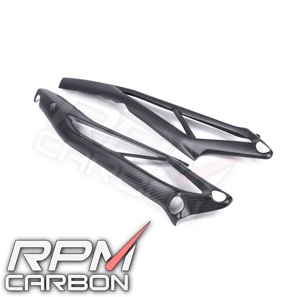 Die Carbonfaser-Hilfsrahmenabdeckungen der Triumph Street Triple 765 sind fachmännisch gefertigt und bieten höchste Leistung und Langlebigkeit. Dank der Kombination aus Carbonfaser und fortschrittlicher Technologie bieten diese Abdeckungen maximale Stabilität und Schutz für den Hilfsrahmen Ihres Motorrads. Vertrauen Sie auf unsere branchenführende Expertise und genießen Sie den eleganten, professionellen Look dieser Abdeckungen.
