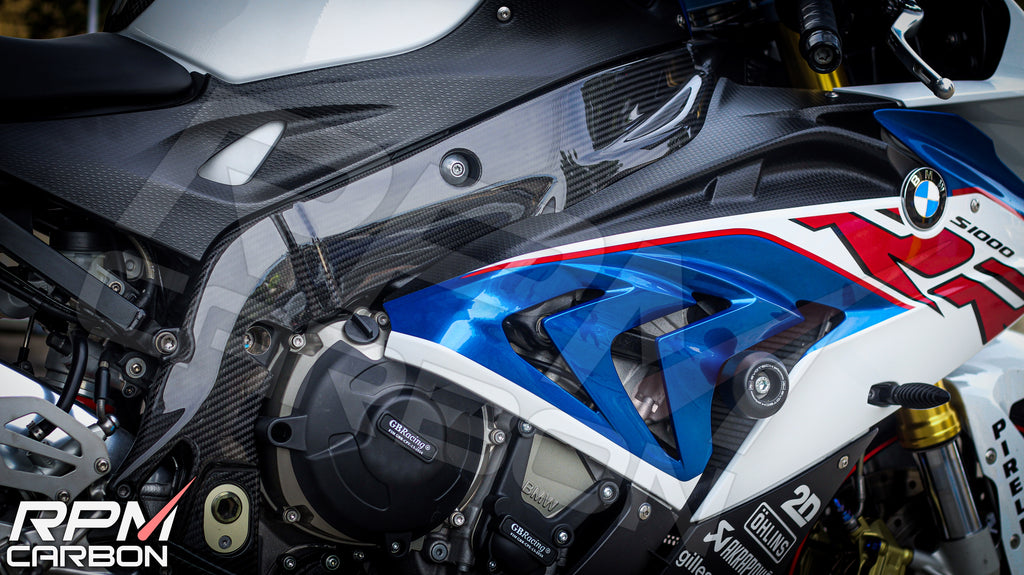 Carbon Fiber Frame Covers Protectors for BMW S1000RR and the S1000R naked bike.