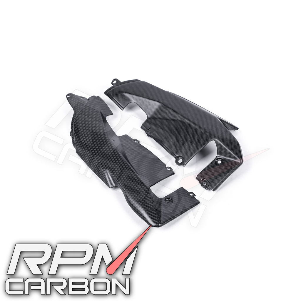 Unleash the full Superbike DNA of your Ducati Panigale V2 with a set of Carbon Fiber Lower Fairings. These meticulously crafted panels are a direct replacement for the large, vulnerable OEM plastic belly pan, offering maximum weight reduction, enhanced engine protection, and a visually striking finish.