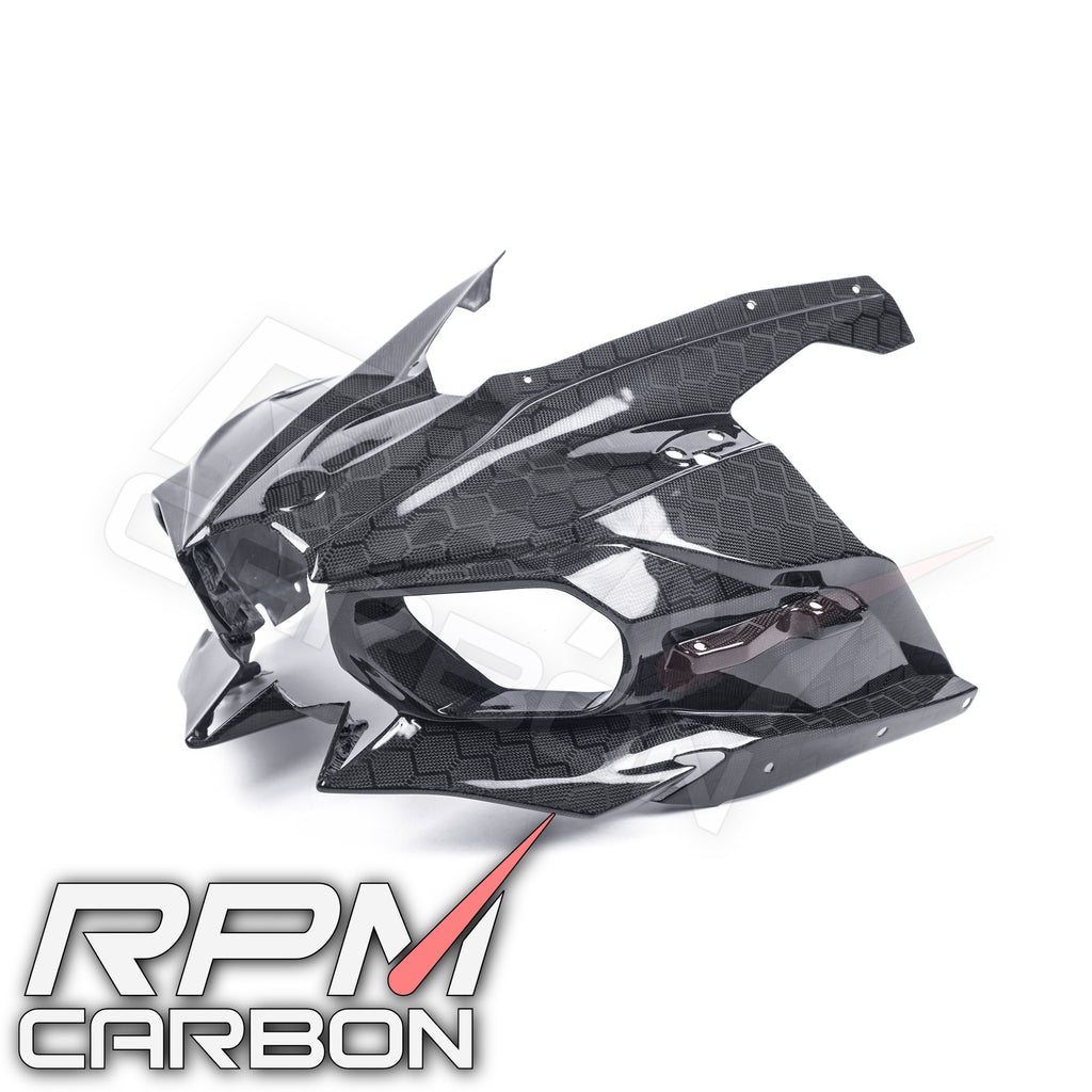 Only at RPM Carbon can you get the OEM Replica Version of the Kawasaki H2 Carbon Fiber Front Head Fairing Cowl.