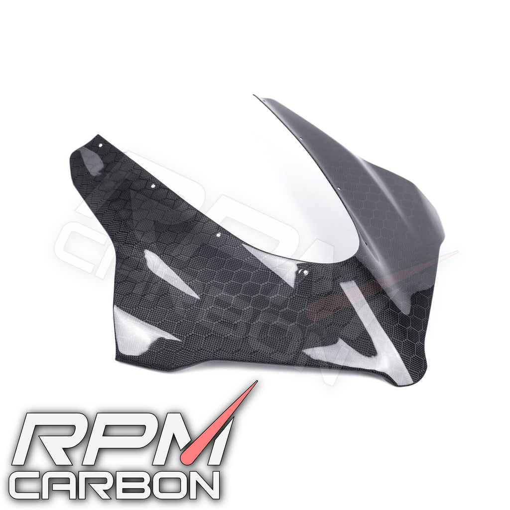 Transform the front end of your Ducati Panigale V4 with RPM Carbon's meticulously crafted carbon fiber front fairing. Made from high-quality carbon fiber, this fairing offers superior strength, a flawless finish, and a precise fit. It adds a touch of race-inspired style while potentially improving aerodynamics, and guarantees your bike will turn heads wherever it goes.