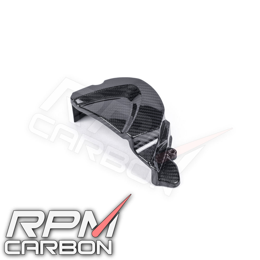 Give the heart of your Triumph's drivetrain an aggressive, race-inspired upgrade and essential protection with this Carbon Fiber Sprocket Cover for the Street Triple 765 R / S / RS (2017+). This high-quality cover replaces the large, often plain, factory plastic component, exposing the front sprocket while guarding the engine case.
