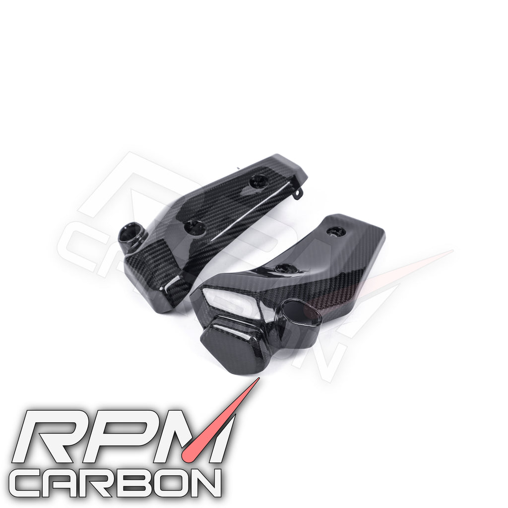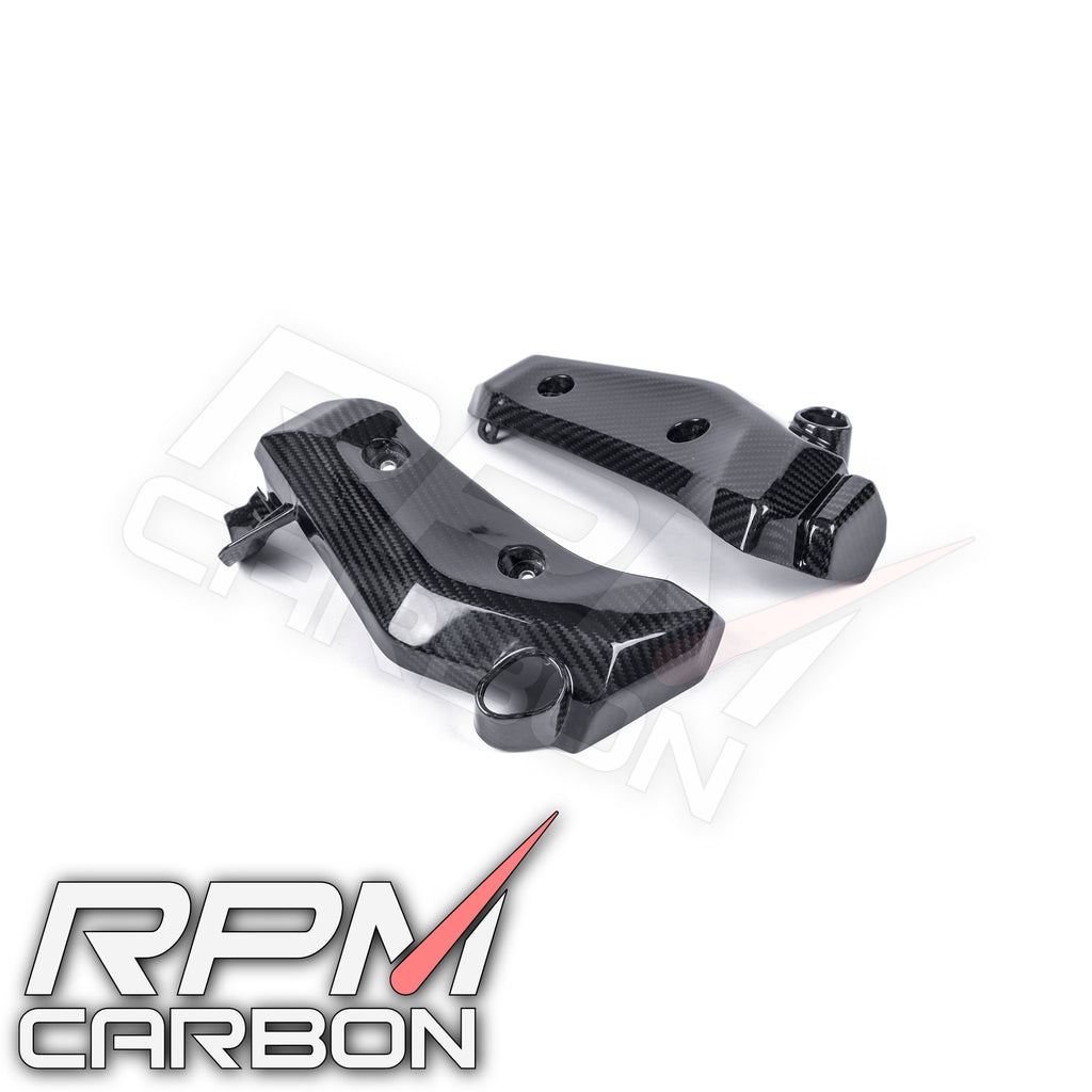 Enhance the rugged, exposed mid-section of your Yamaha MT-07 (FZ-07) with a set of Carbon Fiber Side Panels. These components replace the prominent factory plastic fairings that flank the fuel tank and radiator, delivering an immediate and noticeable upgrade in texture, durability, and high-tech styling.